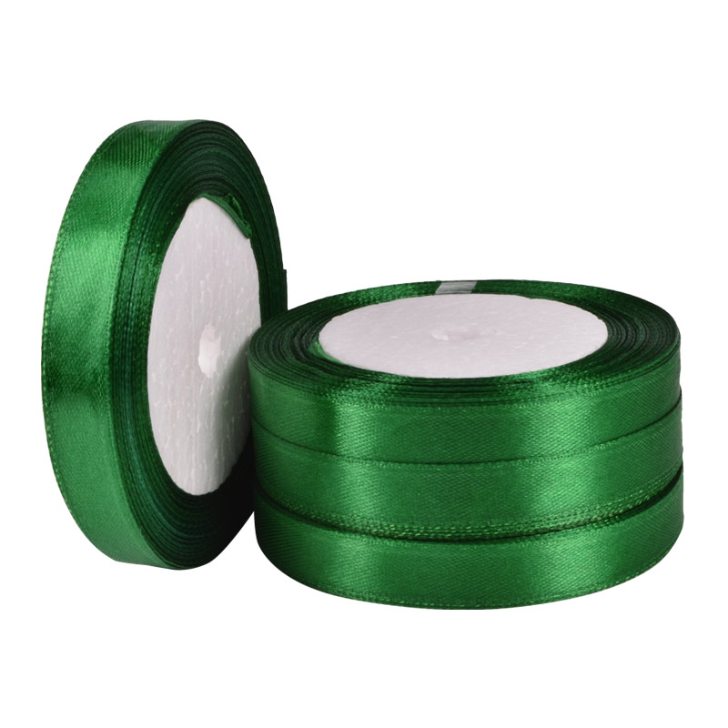 Атласна стрічка, 12 мм, Зелена (LEN-051120) / 1 моток (22 м)