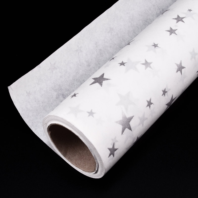 Папір тіш'ю з сріблястими зірками, 50см х 14м, Білий (UPK-051324) / 1 рулон