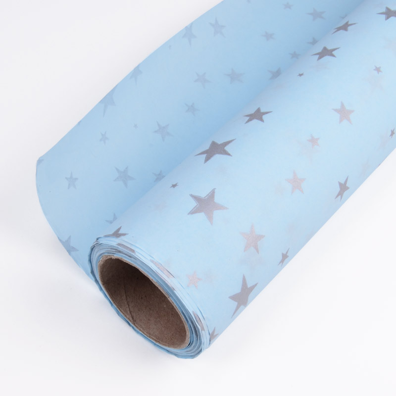 Папір тіш'ю сріблястими зірками, 50см х 14м, Блакитна (UPK-051325) / 1 рулон