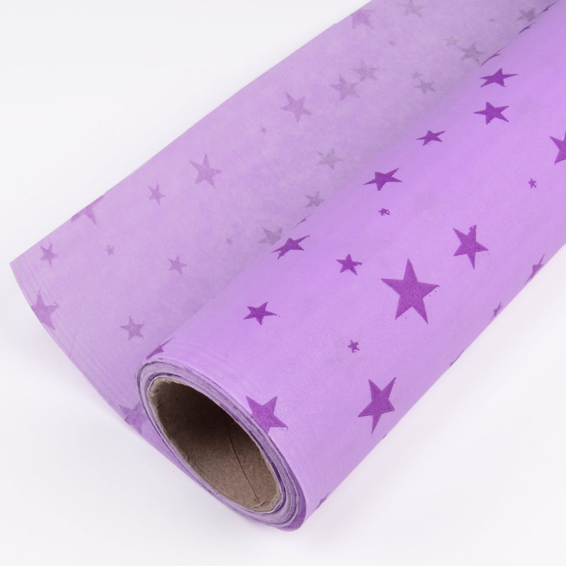 Папір тіш'ю з бузковими зірками, 50см х 14м, Бузковий (UPK-051332) / 1 рулон