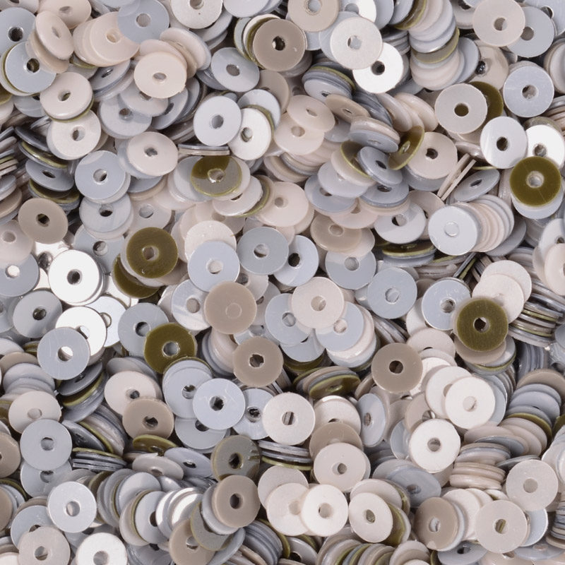 Паєтки Індія круглі плоскі, 4 мм, Мікс сріблясто-бежевий (PAI-051877) /