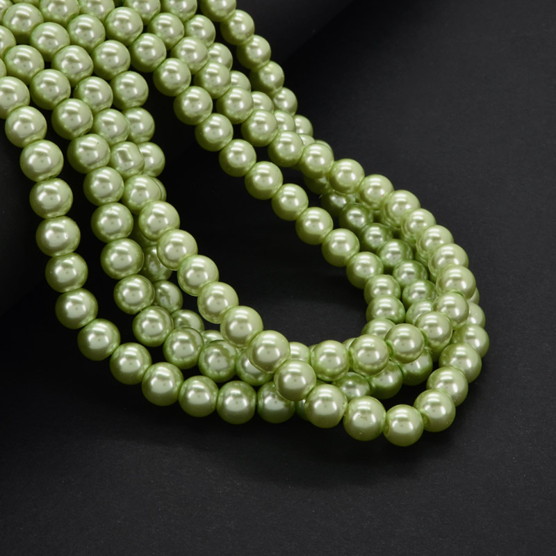 Намистини скляні Перли, 8 мм, Салатові, Круглі (BUS-052082) / 1 низка