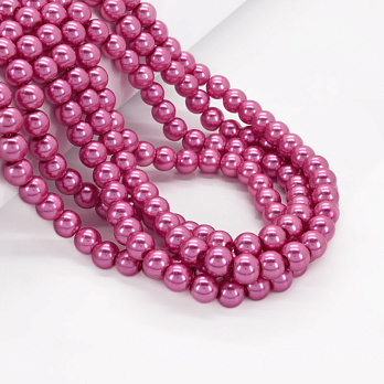 Намистини скляні Перли, 8 мм, Рожеві, Круглі (BUS-052097) / 1 низка