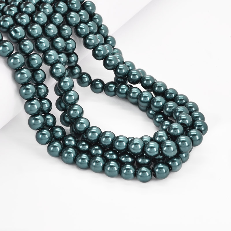 Намистини скляні Перли, 8 мм, Смарагдові, Круглі (BUS-052107) / 1 низка