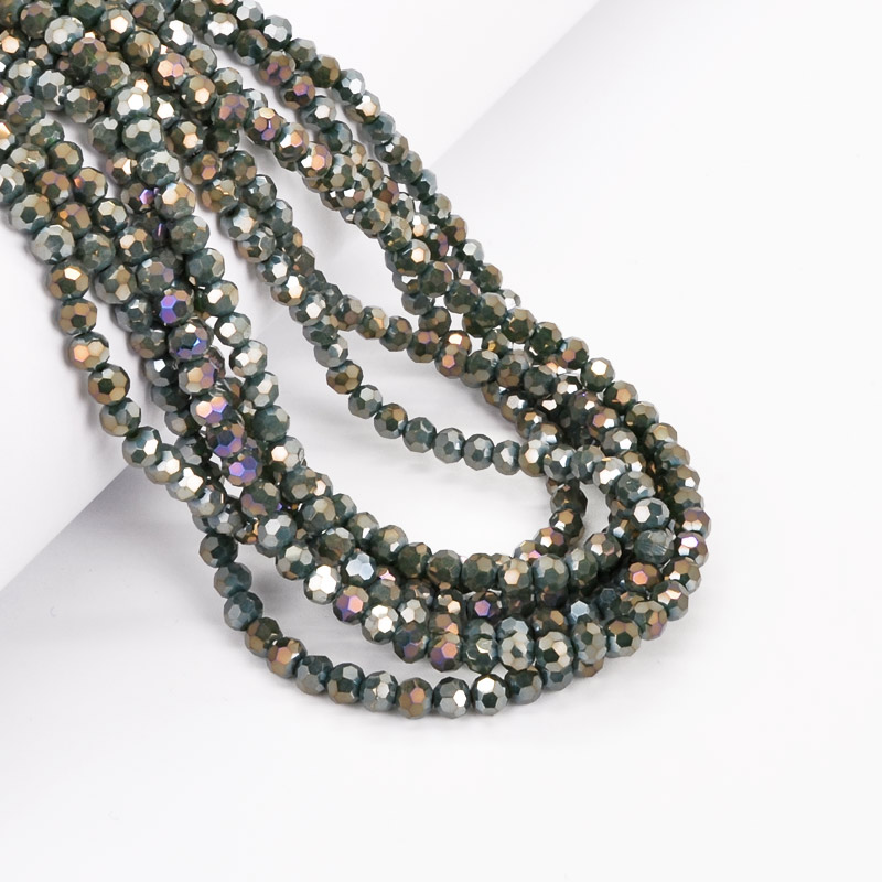 Намистини круглі грановані, 4 мм, Оливкові АВ (BUS-052190) / 1 низка