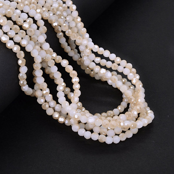 Намистини круглі грановані, 4 мм, Бежево-білі АВ (BUS-052197) / 1 низка