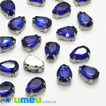 Шатон крапля 14х10 мм, Темне срібло, Синій (KAB-052601) / 1 шт