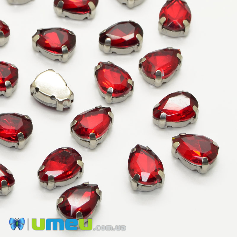 Шатон крапля 14х10 мм, Темне срібло, Червоний (KAB-052607) / 1 шт