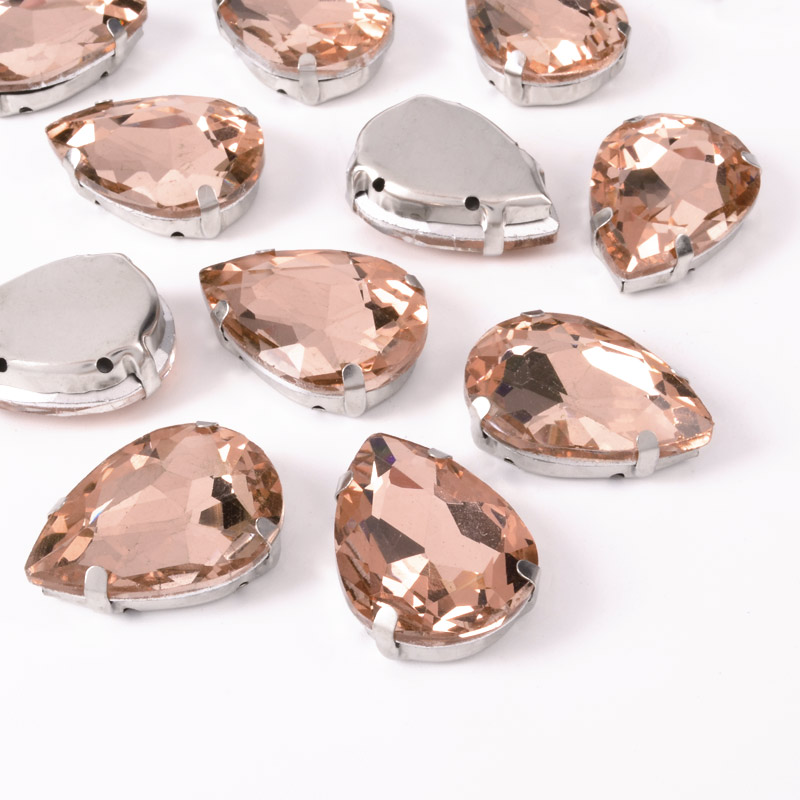 Шатон крапля 25х18 мм, Темне срібло, Персиковий (KAB-052622) / 1 шт