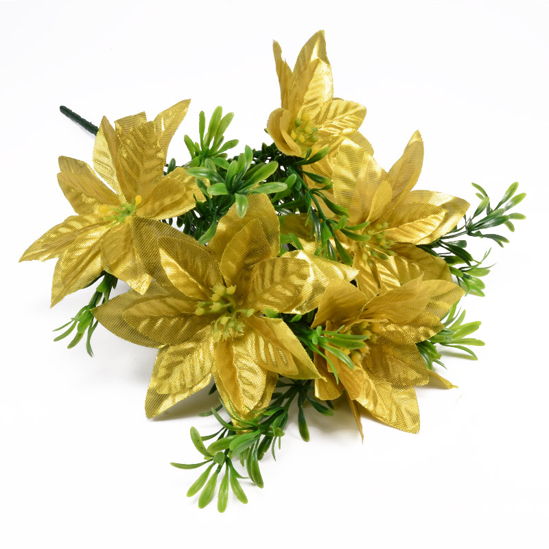 Букет пуансетії, 33 см, Золотистий (DIF-052632) / 1 шт