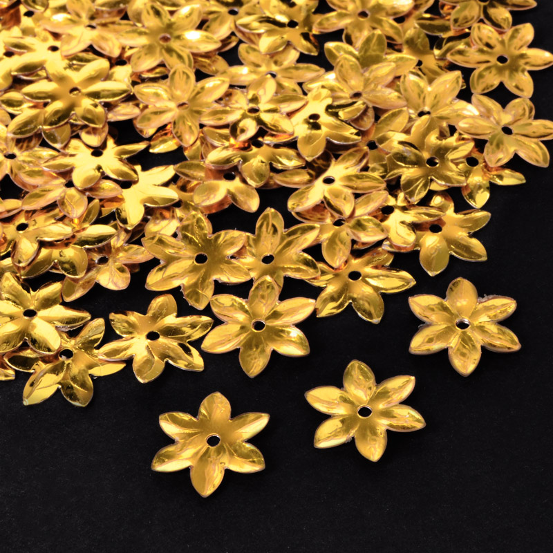 Паєтки Китай Квіти, 12 мм, Золотисті (PAI-052681) / 1 уп (5 г)