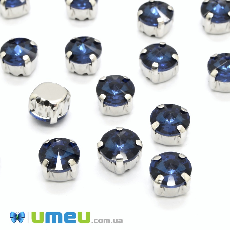 Шатон круглий 14 мм, Темне срібло, Синій темний (KAB-052709) / 1 шт