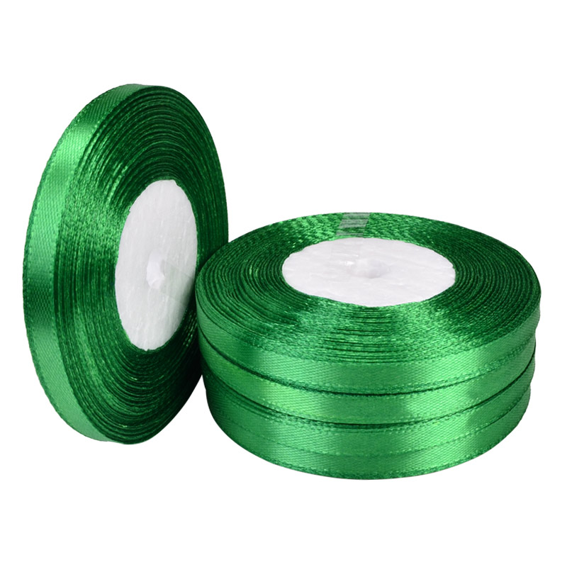 Атласна стрічка, 6 мм, Зелена (LEN-052825) / 1 моток (33 м)