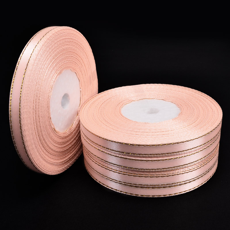 Атласна стрічка з люрексом, 6 мм, Персикова (LEN-052855) /