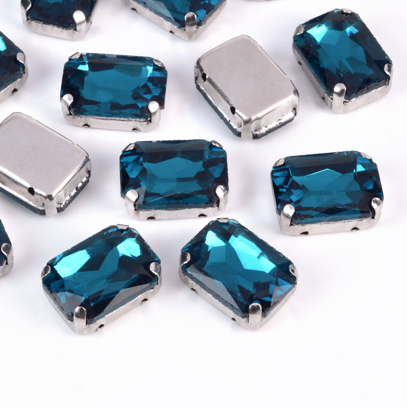 Шатон прямокутний, 14х10 мм, Бірюзовий, Темне срібло (KAB-052880) / 1 шт