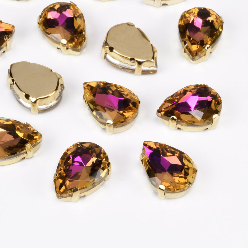 Шатон крапля 14х10 мм, Золото, Золотисто-малиновий (KAB-052920) / 1 шт