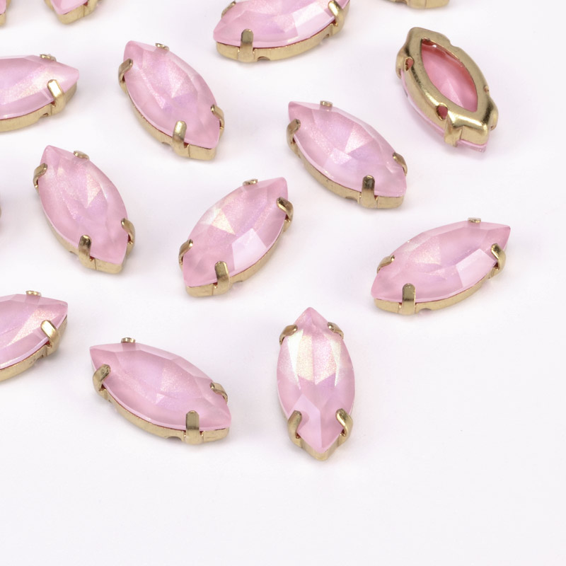 Шатон човник 15х7 мм, Золото, Рожевий (KAB-052941) / 1 шт