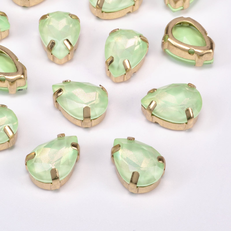 Шатон крапля 14х10 мм, Золото, Салатовий (KAB-052947) / 1 шт
