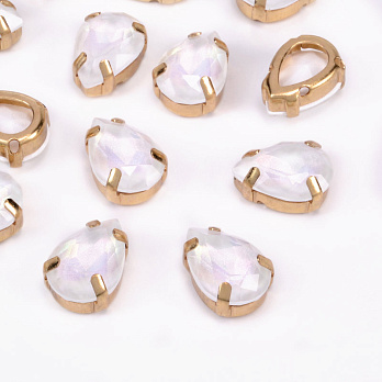 Шатон крапля 14х10 мм, Золото, Білий (KAB-052949) / 1 шт