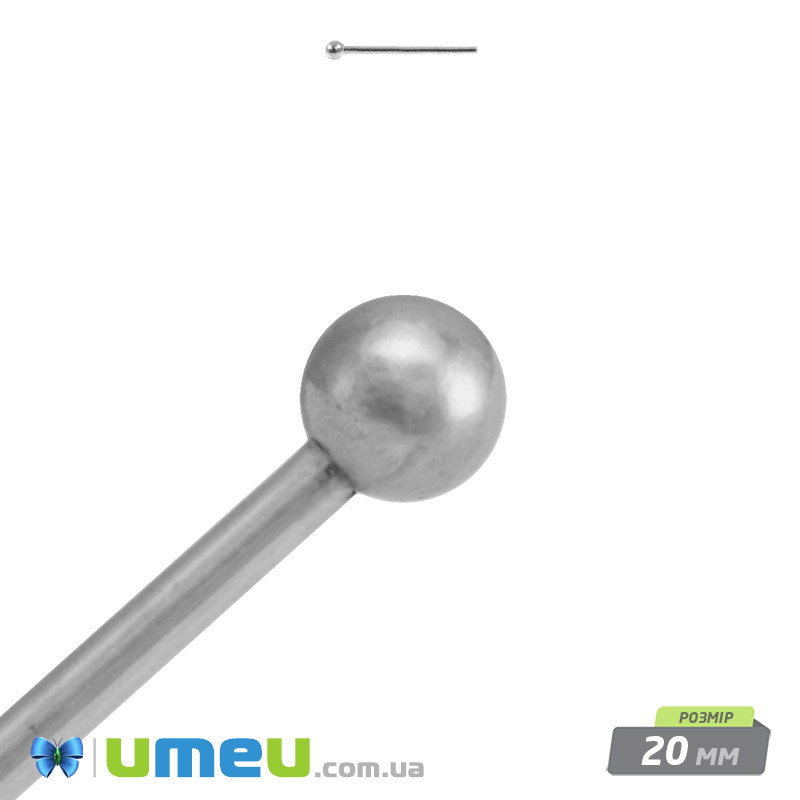 Гвоздики з кулькою, Темне срібло, 20 мм, 0,5 мм (PIN-053023) /