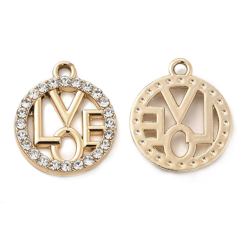 Підвіска метал. LOVE зі стразами, 19х16 мм, Світле золото (POD-053485) / 1 шт