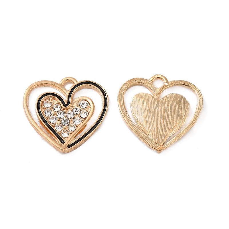 Підвіска метал. Серця зі стразами, 20х20 мм, Світле золото (POD-053486) / 1 шт