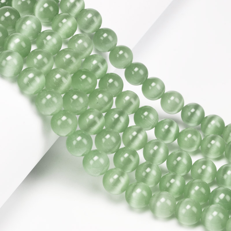Намистини Котяче око, Синт. камінь, 10 мм, Салатові, Круглі (BUS-054221) / 1 низка
