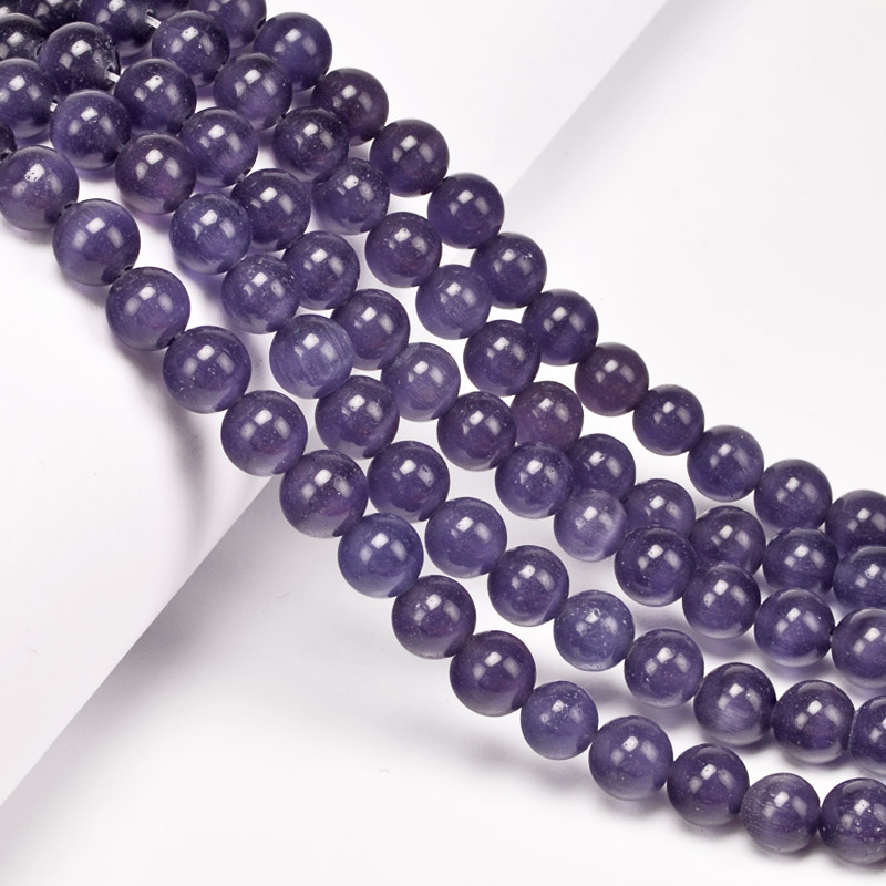 Намистини Котяче око, Синт. камінь, 8 мм, Аметистові, Круглі (BUS-054231) / 1 низка
