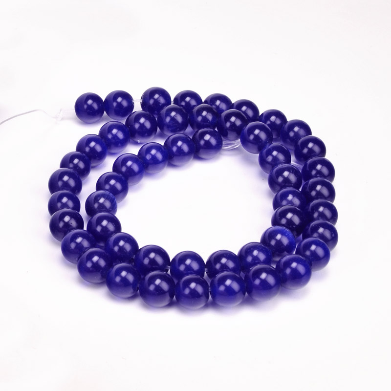 Намистини Котяче око, Синт. камінь, 8 мм, Сині, Круглі (BUS-054240) / 1 низка