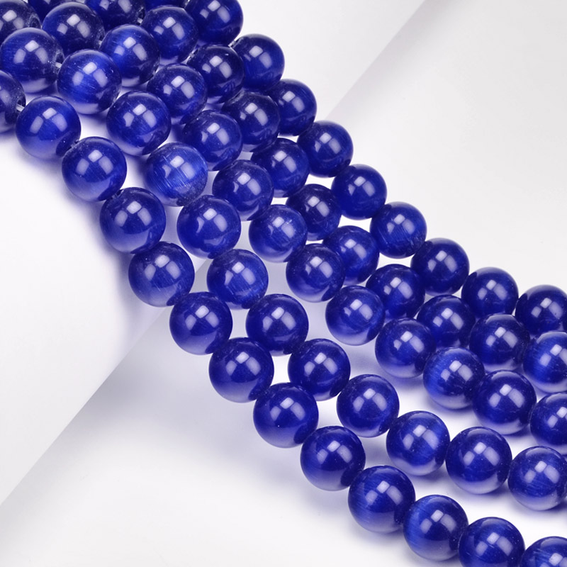 Намистини Котяче око, Синт. камінь, 10 мм, Сині, Круглі (BUS-054241) / 1 низка