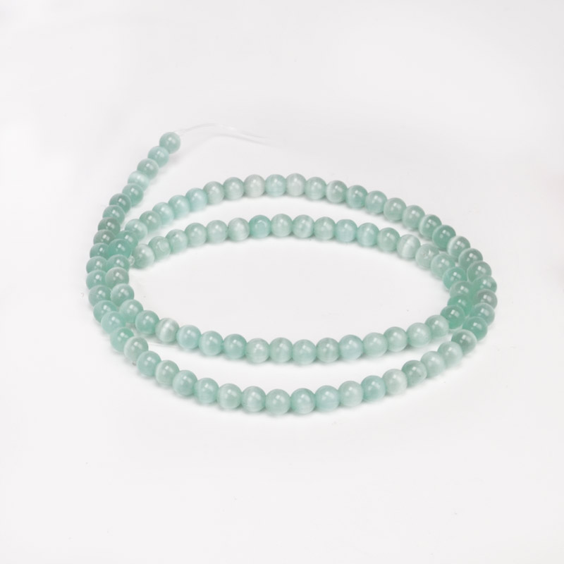 Намистини Котяче око, Синт. камінь, 4 мм, М'ятні, Круглі (BUS-054242) / 1 низка