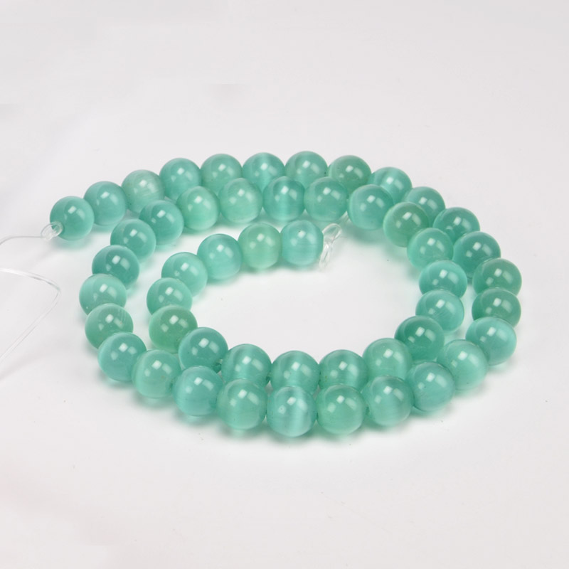 Намистини Котяче око, Синт. камінь, 8 мм, М'ятні, Круглі (BUS-054244) / 1 низка