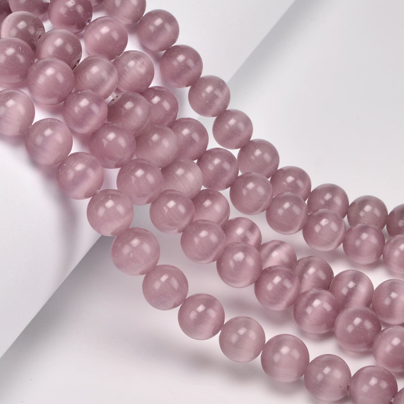 Намистини Котяче око, Синт. камінь, 10 мм, Пудрові, Круглі (BUS-054263) / 1 низка