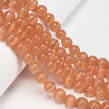 Намистини Котяче око, Синт. камінь, 10 мм, Помаранчеві, Круглі (BUS-054274) / 1 низка