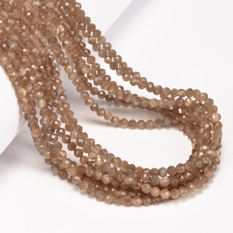 Намистини Котяче око, Синт. камінь, 3 мм, Гірчичні, Круглі грановані (BUS-054294) / 1 низка