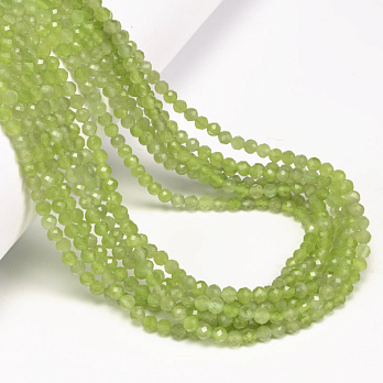 Намистини Котяче око, Синт. камінь, 3 мм, Оливкові, Круглі грановані (BUS-054298) / 1 низка