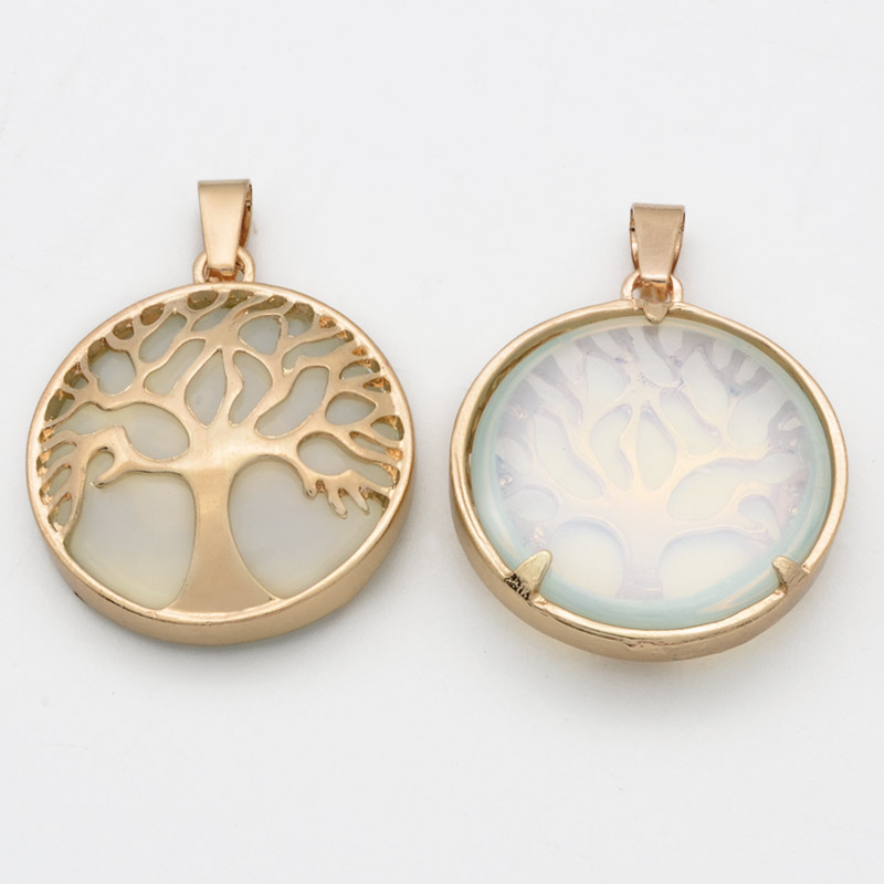 Підвіска мет. Дерево з кабош. із синт. каменю Опаліт, Золото, 31х28х8 мм (POD-054364) /