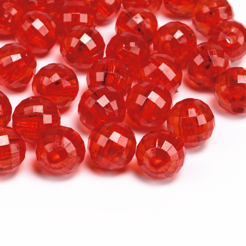 Намистини для сумок ОПТ, Акрилові, Круглі грановані, 9,5 мм, Червоні (BUS-054540) / 1 уп (500 г)