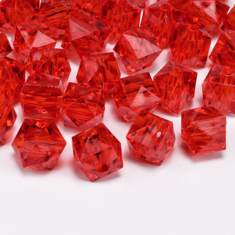 Намистини акрилові, Куб гранований, 10х8,5 мм, Червоні (BUS-054560) /