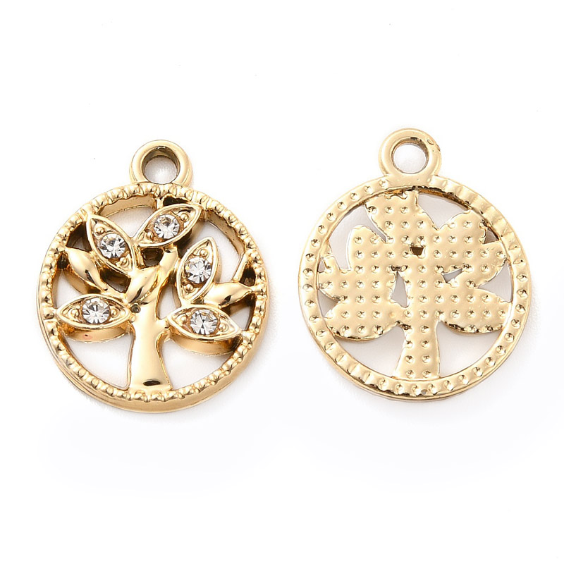 Підвіска метал. Дерево зі стразами, 18х14,5 мм, Золото (POD-054671) / 1 шт