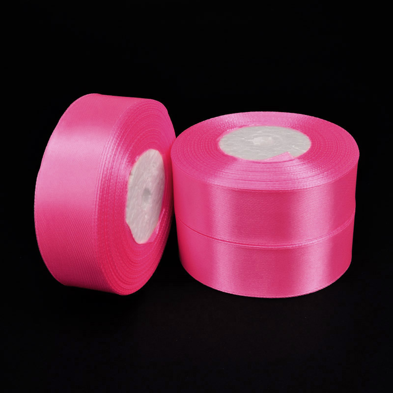 Атласна стрічка, 25 мм, Рожева яскрава (LEN-055245) / 1 моток (22 м)