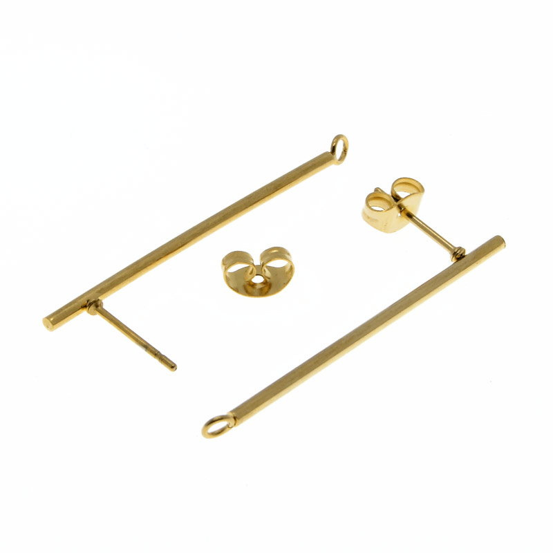 Пусети з нерж. сталі із заглушками, 37,5х12,5 мм, Золото (STL-055278) / 1 уп (2 шт)