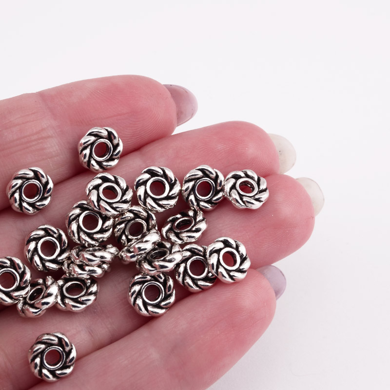 Намистини-розділювачі мет., 8х2,3 мм, Античне срібло (BUS-055346) / 1 уп (10 шт)
