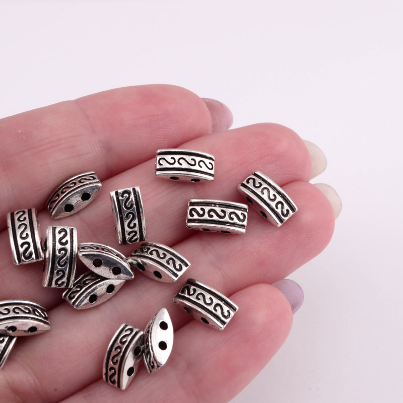 Намистини мет. на 2 отвори, 10х5 мм, Античне срібло (BUS-055365) / 1 уп (5 шт)