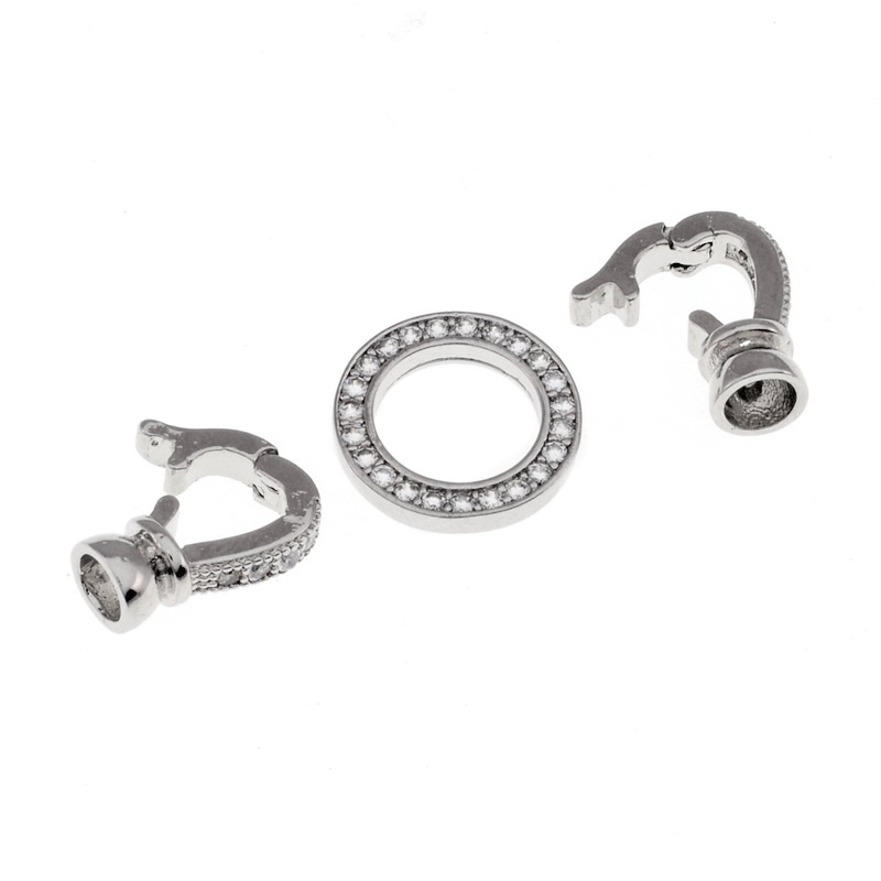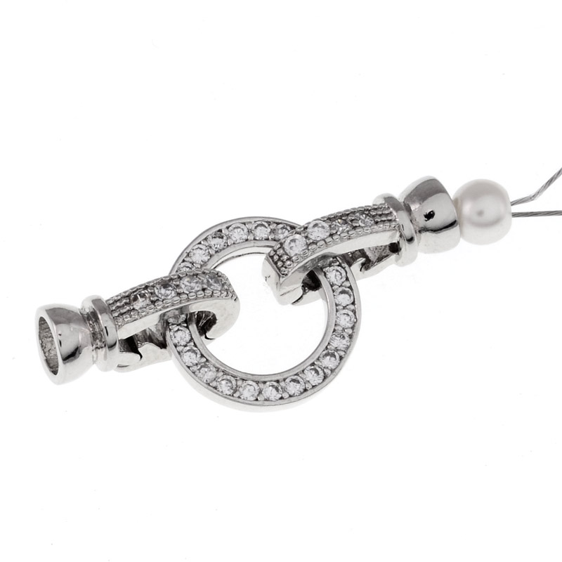 Застібка, 30х13 мм, Латунь із покриттям Родій, Куб. цирконій (ZAM-055451) / 1 шт