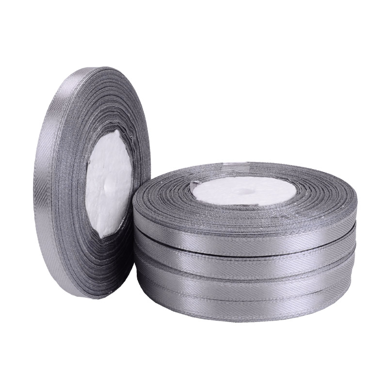 Атласна стрічка, 6 мм, Сіра (LEN-055735) / 1 моток (33 м)