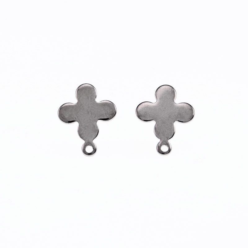 Пусети з нерж. сталі із заглушками, Квіточки, 13х10 мм, Темне срібло (STL-055771) / 1 уп (2 шт)