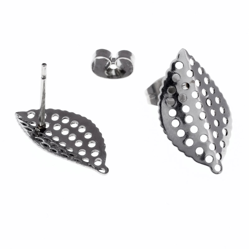 Пусети з нерж. сталі з заглушками, Листочки, 18х11 мм, Темне срібло (STL-055774) / 1 уп (2 шт)