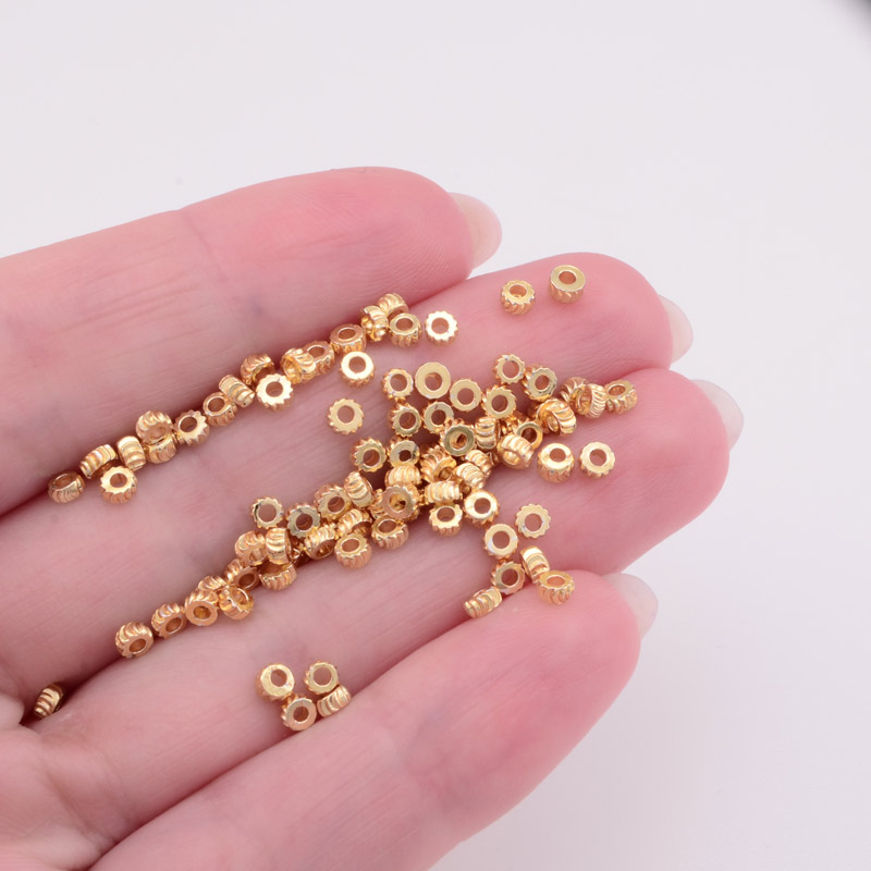 Намистини-розділювачі, 3х1,5 мм, Латунь з покриттям 18 kt (BUS-055833) / 1 уп (5 шт)