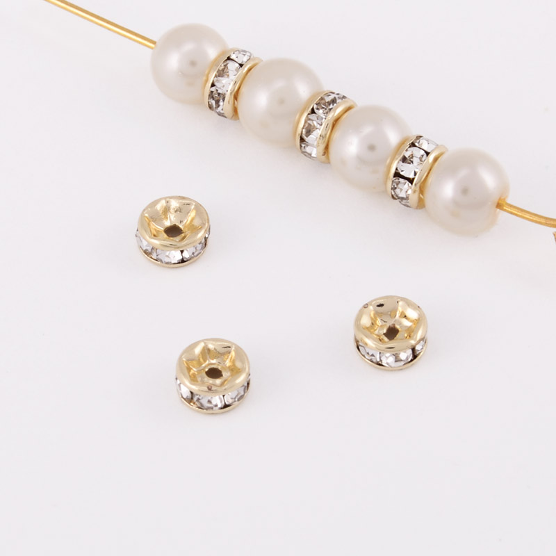 Намистина-розділювач, 5 мм, Латунь з покриттям 14 kt, Стрази куб. цирконій (BUS-055887) / 1 шт